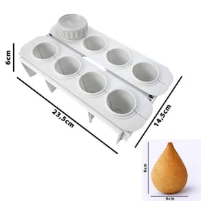 Otimize sua produção de salgados com a Forma Modeladora Fábrica de Coxinhas 8 Posições com Bico Auxiliar de Recheio e Fechador. Prática, resistente e de fácil manuseio, ela foi desenvolvida para quem deseja padronizar coxinhas grandes e outros salgados, garantindo rapidez, economia de tempo e qualidade em cada unidade. Com capacidade para moldar 8 coxinhas por vez, a forma proporciona uniformidade no tamanho e acabamento perfeito, ideal para vendas em larga escala ou para quem busca praticidade no preparo caseiro. O bico auxiliar de recheio facilita a aplicação, evitando desperdícios e acelerando o processo. Fabricada em material durável e de alta resistência, é de fácil higienização, garantindo mais praticidade e higiene para sua cozinha. Modo de Uso: Abra a forma e coloque a massa nas cavidades. Posicione o recheio no centro com o auxílio do bico aplicador. Feche a forma pressionando levemente para dar acabamento. Retire as coxinhas já modeladas, prontas para empanar e fritar. Vantagens: Produz 8 coxinhas grandes por vez. Recheio rápido e prático com o bico auxiliar. Padronização no tamanho, ideal para vendas. Reduz tempo de produção e aumenta a produtividade. Fácil de limpar e reutilizar. Garanta agora a sua Forma Modeladora de Coxinhas 8 Posições e leve mais agilidade e profissionalismo para sua produção de salgados. Seja para uso doméstico ou comercial, essa é a ferramenta que vai transformar sua cozinha em uma verdadeira fábrica de lucros
