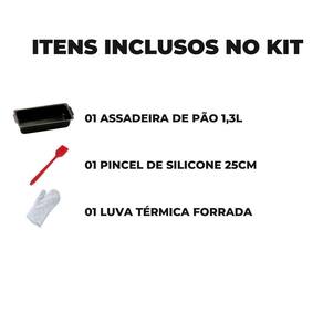 01 Forma de Pão 1,3L 01 Pincel Culinário de Silicone 01 Luva Térmica de Cozinha