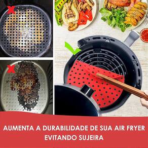 A Forma Para Air Fryer é a solução perfeita para quem procura aumentar a durabilidade de seu equipamento de forma simples e prática. Evita o contato direto do alimento com a bandeja do air fryer. Protege seu equipamento dos resíduos dos alimentos, gorduras e temperos. É muito fácil de usar, uma vez que já vem no formato de uma forma sendo necessário apenas colocar o alimento dentro e inserir dentro da air fryer. Se encaixa muito bem nos equipamentos de 3 a 5 litros.