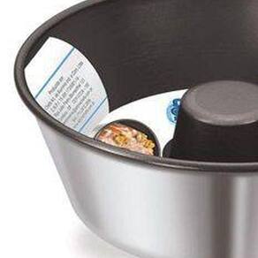A Forma Com Canudo é fabricada em alumínio reforçado, garantindo maior resistência ao produto. Possui revestimento interno de 5 camadas de antiaderente. E sua parte externa tem acabamento escovado.