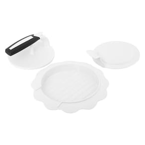 A forma para hambúrguer é fabricada em plástico resistente, composta por três peças que auxiliam a confecção do seu hambúrguer caseiro.