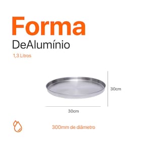 Especificações Técnicas: – Material: Alumínio de alta qualidade – Capacidade: 1,3 Litros – Diâmetro: 30 cm (Tamanho N30) – Altura aproximada: 3 cm – Acabamento: Alumínio polido, leve e resistente ao calor Atenção para o detalhe: a espessura do alumínio garante que o calor seja distribuído de forma uniforme, proporcionando pizzas com bordas crocantes e centro no ponto ideal.