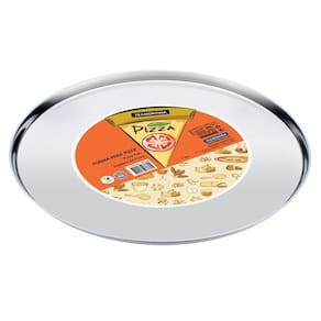 Com a Forma para Pizza Tramontina Service em Aço Inox 30 cm de diâmetro uma pizza saborosa e as boas companhias estão garantidas. Ideal para servir pizzas com 30 cm de diâmetro, a fôrma dá um toque de sofisticação nas refeições devido ao visual moderno e à qualidade do aço inox. Ela possui bordas na altura certa para deixar o cozimento da sua pizza no ponto! Chame os amigos para aproveitar uma bela pizza com muito estilo e bom gosto. Orientações Totalmente feita de aço inox, por isso não solta nenhum resíduo nos alimentos, mantendo-os saudáveis. Altamente durável, mantém as características originais, preservando a beleza, a higiene e a durabilidade do material. Desenho limpo e sem cantos torna a limpeza mais fácil. Bordas na altura certa para o cozimento da sua pizza. Acabamento brilho. Pode ser lavada diariamente na máquina de lavar louças. Observações Use apenas sabão ou detergente e uma esponja macia. Outros tipos de produto como palha de aço, poderão riscar ou prejudicar o brilho das peças. Enxágue cada item a fim de remover totalmente os resíduos dos produtos de limpeza, que, por serem abrasivos, podem danificar o inox. Sempre que possível, use água quente, pois renova o brilho das peças. Após a lavagem, enxugue imediatamente as peças, caso contrário, as substâncias químicas da água (cloro) poderão causar manchas. Evite atrito entre as peças durante o processo de lavagem e no armazenamento, para mantê-las sem riscos. A assadeira toda em aço inox pode ir ao forno, podendo haver mudança na coloração.Não guarde as peças em locais úmidos. A umidade também provoca manchas. Características Gerais EAN13 7891116080566 DUN14 17891116080563 NCM 7323.93.00 Peso Líquido 0,3750 kg. Peso Bruto 0,3750 kg. Metragem 0,000450 m³. Dimensões Embalagem (Compr. X Larg. X Alt.) 300x 300x 5 mm. Dimensões Produto (Compr. X Larg. X Alt.) 300x 300x 5 mm. Diâmetro 30,0 cm. Espessura 0,6 mm.