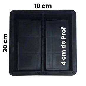 Forma piso bloquete para calçamento dupla 20x10x4 kit 10 formas Instruções técnicas - lubrificação: Primeiro seque a forma, nunca lubrifique a forma molhada depois de secar, basta imergir a forma em uma mistura de óleo diesel com 10% de óleo queimado, isso evita a formação de bolhas. Depois incline para escorrer por 30 minutos. - enchimento: Ao encher usando uma pá, evite bater a pá na forma para evitar deformação da mesma, não nos responsabilizamos por tal dano. Depois de encher, coloque as formas em um carro plataforma e deixe secar. Não empilhe muitas formas após vibradas, pois isso pode quebrar as bordas e causar deformidades. - desmoldagens: Para desmoldar, basta usar um martelo de borracha. - limpeza: Para limpar, use uma solução de ácido clorídrico muriático. Distribua 1 litro da solução para 20 litros de água. Coloque as formas na solução por 15 minutos e quando for retirar, usar luvas longas de borracha. - conservação: Quando não estiver usando, mantenha as formas em um local ventilado e com sombra. - traço básico 3x1: As quantidades do traço podem mudar de acordo com a temperatura, vibração, resistência e umidade, mas, seriam de 3 quantidades de areia, 3 de pedra brita e 1 de cimento. - produção: Manter a média de 1 desmoldagem dia para evitar comprometer a qualidade da estrutura. Em dias muito quentes, pode-se fazer até duas desmoldagens. - para colorir: Sempre use pigmentos de boa qualidade e mantenha as formas sempre limpas. Use uma proporção de 2kg de pigmento por saca de cimento, respeitando a ordem de, primeiro água, depois cimento e por último o pigmento. Marca: Gme Formas