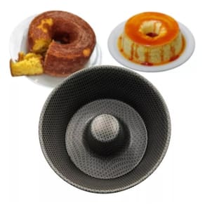 Forma de pudim redonda 18cm bolo torta com furo ergonômica cozinha versátil padaria vazada forneável apresentamos a forma de pudim redonda 18cm cinza