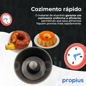 - fabricada com alumínio de alto padrão, esta forma de pudim é incrivelmente resistente e não enferruja rápido, garantindo durabilidade e eficiência no preparo de suas sobremesas.