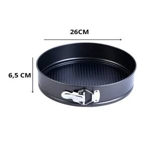 Características: - Tamanho: 6,5cm de altura x 26cm de diâmetro; - Não precisa untar; - Fácil de limpar; - Forma: redonda; - Material: aço. Marca: Não Informado