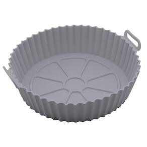 Forma redonda de silicone cinza para Air Fryer, com 19cm de diâmetro e 6,5cm de altura. Antiaderente, resistente ao calor e fácil de limpar. Ideal para quiches, bolos e tortas.Tipo