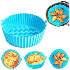Forma silicone air fryer forno microondas fritadeira Cor: azul Nome do produto: forma silicone air fryer forno microondas fritadeira Forma redonda de silicone para air fryer 23,5 cm - ad-0324