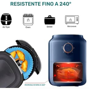 - material: silicone - suporta temperaturas: -40ºc até 230ºc - livre de bpa bpa free - antiaderente - alças para facilitar o manuseio - formato: redonda - tamanho 19cm, compatível com diversos modelos de air fryer. - comprimento: 19cm - altura: 7cm