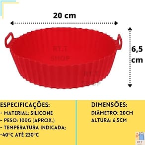 O forro pra fritadeira forma silicone air fryer micro-ondas é um produto indispensável para a sua cozinha. Compatível com air fryer, freezer, microondas e forno, essa forma de silicone é prática e fácil de manusear. Fabricada em silicone de alta qualidade, livre de bpa, ela é resistente, antiaderente, maleável e reutilizável. Além disso, suporta temperaturas que variam de -40ºc até 230ºc, o que a torna perfeita para diversas preparações na cozinha. Com dimensões de 20cm de diâmetro e 6,5cm de altura, essa forma para air fryer possui uma alça que facilita o manuseio e evita acidentes. Ela é leve, pesando aproximadamente 100g, e pode ser facilmente limpa, podendo ser inclusive levada à lava-louças. O forro pra fritadeira forma silicone air fryer micro-ondas não contamina alimentos e não possui toxinas, garantindo a segurança e a qualidade das suas preparações. Além disso, ele não deve ter contato direto com fogo ou objetos cortantes. Esse produto é enviado com cores , trazendo um toque de alegria para a sua cozinha. Com essa forma de silicone, você poderá preparar diversas receitas de forma prática e saudável, sem se preocupar com o alimento grudando ou queimando. Marca: Aline