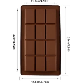 Transforme sua paixão por chocolate em arte com a nossa Forma de Silicone para Barras de Chocolate Crie barras de chocolate deliciosas e personalizadas no conforto da sua casa. Esta forma de silicone de alta qualidade possui 12 cavidades, perfeitas para moldar chocolates com o seu sabor favorito, recheios criativos ou até mesmo para presentear. Feita em silicone flexível e antiaderente de grau alimentício, garante que suas barras se soltem facilmente, sem grudar e com acabamento impecável. É resistente a altas e baixas temperaturas, ideal para uso no forno, micro-ondas, freezer e super fácil de limpar na lava-louças. Liberte sua criatividade e desfrute de chocolates caseiros perfeitos - Informações Adicionais - 21,5x10,8x2cm Cav. Menor: 2x3,2x2cm Cav. Maior: 2,2x3,7x2cm