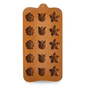 A Forma de Silicone com 15 cavidades no formato Flores, com 15 cavidades divididas em 3 formatos, sendo 5 moldes de cada modelo, é um utensílio de cozinha projetado para facilitar a criação de bom bons, biscoitos, doces finos, trufas, sabonetes, gelo, velas e muito mais!