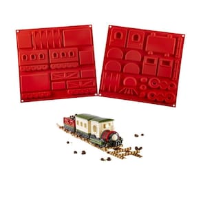 2 Moldes de silicone (frente e verso) com 19 peças para montagem do seu Trem comestível.