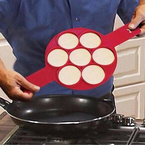 Resistente e extremamente durável, a forma de silicone suporta tranquilamente temperaturas de -50 até 220, permitindo um fácil e prático manuseio de líquidos e alimentos em alta ou baixa temperatura. Seu formato anda junto com a praticidade. Já que é antiaderente e altamente maleável. O molde para massas se mostra muito mais prático e eficiente no uso diário, visto que é possível preparar até 7 unidades de massas ou ovos ao mesmo tempo.O molde para massas e ovos 7 cavidades é uma solução bonita, durável e prática para sua cozinha no dia-a-dia.Obs: Completamente anti-aderente.ESPECIFICAÇÕES:- Material: Silicone de -50 até 22c- Suporta- Possui 7 Cavidades- ideal para fazer: ovos, omeletes, tortilhas, panquecas e tapiocas etc.- pode ir a máquina de lavar louça- Formato ergonômico e prático;- Possui orifícios em tamanhos variados para facilitar a pressão;-cabo totalmente higiênico e reforçado;-estrutura reforçada não amassa ou deforma ;-não esquenta;-altamente resistente a quedas;-design inovador e moderno;-leve e fácil de manejar;- Dimensões Aproximadas : Altura: 1 cm x Diâmetro total: 24 cm x Diâmetro cavidade: 8 cm.