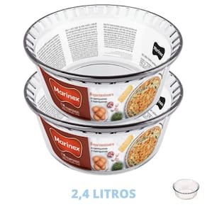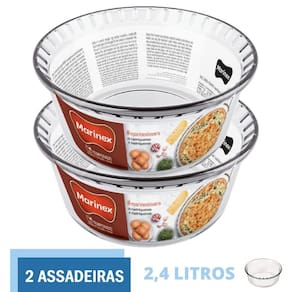 Itens inclusos: 2 Assadeiras de vidro Suflê 2,4 LitrosMarinex com as respectivas descrições acima