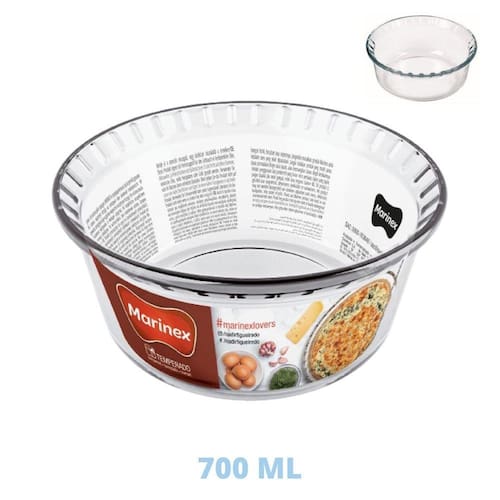 Itens inclusos: Assadeira de vidro Suflê 700ml Marinex com as respectivas descrições acima