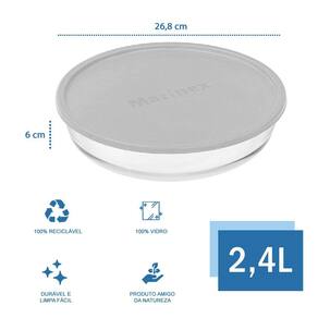 Assadeira de vidro Redonda com tampa 2,4 Litros Marinex