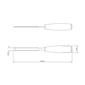 - Lâmina em aço cromo vanádio temperado e lixado.