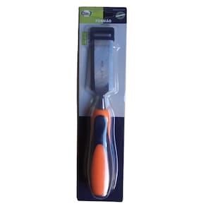 ferramenta ideal para entalhar, desbastar ou esculpir madeira. Muito utilizado por marceneiros, carpinteiros, artesãos e demais profissionais, é um equipamento essencial em obras e oficinas de marcenaria. Formão com qualidade profissional e possui cabo emborrachado para maior segurança e conforto, com pino de metal para usar o martelo como auxiliar, obtendo uma maior eficiência. Ficha técnica