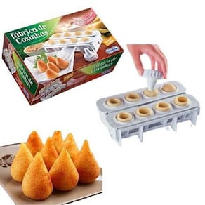 O Kit Fábrica de coxinhas é indispensável para fazer aquela deliciosa coxinha de frango, carne moída, queijo, e outras além da imaginação. Com sua forma simples, prática e eficiente ela irá facilitar muito o seu trabalho. Desenvolvida em plástico injetado esta fábrica para coxinhas possui 4 peças encaixáveis na base, um modelador para recheio e um modelador superior, para fechar a coxinha. Desse jeito desenformar a coxinha torna-se muito mais fácil, é só retirar a parte interna e abrir as laterais, isso evita que a forma se desfaça. O Kit para coxinhas tem tamanho de 14 cm de largura, por 23 cm de comprimento e 6 cm de altura.