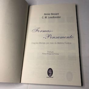 Livro novo, em brochura, com 118 páginas em bom estado. Se desejar solicite outras imagens da obra para melhor avaliação. Dimensões: 23 x 16x 3 cm. MDR135 3 UN SINOPSE Nesta obra, os respeitados autores Annie Besant e C. W. Leadbeater tratam da questão das formas-pensamento de modo esclarecedor, com ilustrações coloridas de diversas formas geradas a partir de várias situações e emoções vividas pelo ser humano. Eles explicam que um dos caminhos mais interessantes do físico para o astral é o estudo do pensamento, pois o cientista ocidental, começando na anatomia e na fisiologia do cérebro, tenta fazer disso a base de uma 'psicologia sólida'.