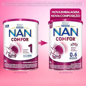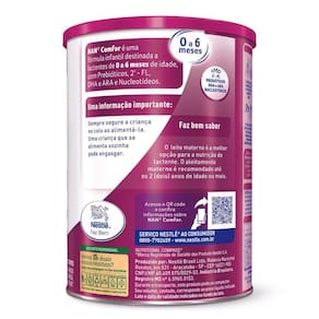 Fórmula Infantil NAN Comfor HMO de 0 a 6 meses 400g Fórmula Infantil para Lactentes. Com prebióticos, DHA, ARA e Nucleotídeos. Não contém glúten. Ingredientes: Soro de leite desmineralizado*, lact