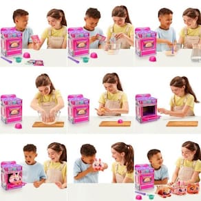 Cookeez Makery é uma experiência surpreendente que vai encantar você! Ao "assar" um amigo de pelúcia surpresa, ao abrir a porta do forno, você descobrirá um amigo interativo de pelúcia, quentinho e perfumado, em forma de uma deliciosa guloseima assada com um aroma irresistível! O Cookeez Makery inclui tudo o que as crianças precisam para misturar e criar essa surpresa assada. Ao abrir a porta do forno pela primeira vez, você encontrará uma caixa e um cartão de receita, que indicam qual amiguinho será assado. Quem sabe se será um cachorrinho, um gatinho ou um coelhinho? A diversão começa quando você mistura os ingredientes para criar uma massa. Com o molde de massa e a espátula inclusa, você adiciona características faciais adoráveis. É muito fácil! Em seguida, coloca no forno e fecha a porta. Em apenas 90 segundos, você ouvirá um adorável "ding". É hora de abrir o forno e conhecer seu novo amigo! Imagine só, um brinquedo de pelúcia quentinho, deliciosamente perfumado e interativo para brincar! Seu novo amiguinho até emite sons encantadores quando você o aperta e brinca com ele! Com o Cookeez Makery, assar amigos nunca foi tão fácil! Quantas pelúcias incríveis seu filho vai criar? São 6 opções disponíveis. E o melhor de tudo é que você pode repetir o processo quantas vezes quiser para impressionar sua família e amigos!