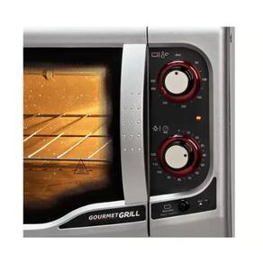 Forno elétrico de bancada com capacidade de 44 litros, termostato regulável de 50ºC a 320ºC, timer de até 120 minutos com aviso sonoro, vidro duplo para melhor conservação do calor e menor consumo de energia.Forno autolimpante