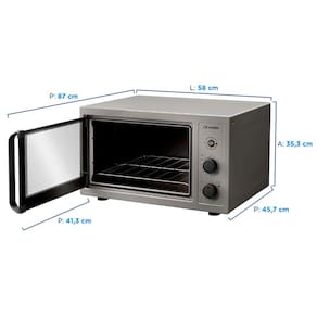Forno elétrico de bancada com 50L de capacidade, 1800W de potência, grill dourador, timer com desligamento automático e função manter aquecido. Interior Total Clean e isolamento térmico inteligente.Timer