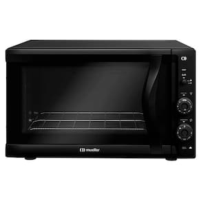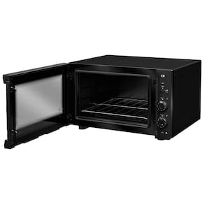 Forno elétrico de bancada com 50 litros de capacidade, potência de 1800W, funções de assar, dourar e aquecer, grill dourador, timer com autodesligamento, função Manter Aquecido, porta de vidro duplo, luz interna, interior Total Clean, grade ajustável em três alturas e bandeja coletora de resíduos.Forno autolimpante