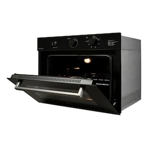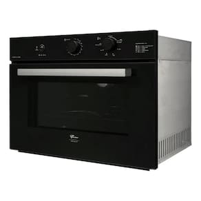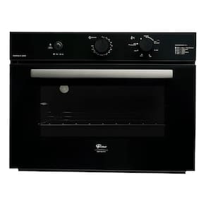 Forno de embutir a gás com grill dourador, timer sonoro e controle de temperatura de 160°C a 260°C. Revestimento interno EasyClean, porta com vidro duplo e sistema de resfriamento interno.Timer