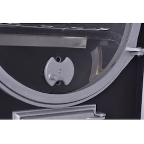 Este forno a lenha possui acabamento interno em aço inoxidável e pintura externa em tinta especial, própria para suportar as altas temperaturas. É fácil de manusear e o único do mercado que possui porta fabricada totalmente em vidro temperado, possibilitando melhor visualização dos alimentos durante o seu preparo.