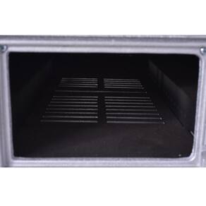 Possui um termômetro para acompanhamento e regulagem da temperatura conforme a necessidade de uso, câmara e bandeja em aço inoxidável e duas grades em diferentes alturas, para melhor aproveitamento dos 170 litros do forno de lenha.