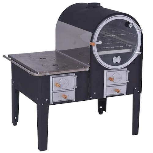 Além de ser fácil de rápido de manusear, o forno a lenha com fogão é o único do mercado que possui porta fabricada totalmente em vidro temperado, possibilitando melhor visualização dos alimentos durante o seu preparo, termômetro para acompanhamento e ajuste da temperatura de acordo com a necessidade da sua receita, câmara e bandeja com revestimento em aço inox, além de duas grades em diferentes alturas que permite melhor aproveitamento dos 132 litros do fogão a lenha com forno.