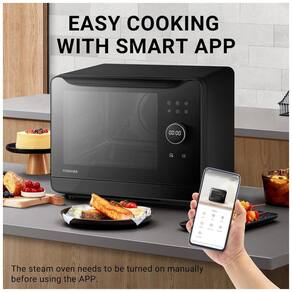 O forno de convecção TOSHIBA pode ser controlado remotamente e monitorado em tempo real via TOSHIBA TSmartLife APP. A receita é atualizada automaticamente. Este forno a vapor possui 36 menus predefinidos. Após selecionar o menu com o APP, o calor e o tempo serão ajustados automaticamente, facilitando o preparo de diversos tipos de alimentos.