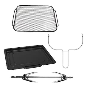 - Super capacidade: Com muito mais espaço para você conseguir assar um frango ou ate uma pizza inteira o forno 5 em 1 tem capacidade total de 9,5 litros. Além disso, possui controle de níveis de altura para adaptar o espaço de acordo com o alimento.