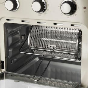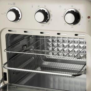 O forno e Fritadeira Airfryer Oven Vintage é o equipamento ideal para a sua cozinha, entrega beleza e funcionalidade, frita grandes quantidades de alimentos, utilizando uma colher de óleo para obter alimentos mais crocantes por fora e macios por dentro. Conta com capacidade de 16 Litros. Possui temperatura ajustável até 230C, que circula à velocidade máxima e a 360C o interior da câmera de cocção e garante a distribuição uniforme do calor. Utilize os 3 cestos perfurados em inox para separar os alimentos e cozinhar ao mesmo tempo, um cesto giratório para uma cocção uniforme e um espeto rotativo para assar frango.