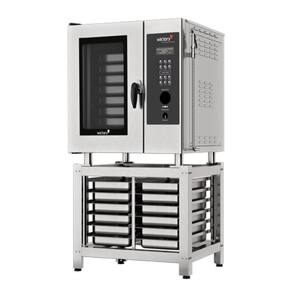 Nosso forno combinado elétrico redefine os padrões de eficiência e segurança na culinária profissional. Ao abrir a porta, o funcionamento do ventilador é automaticamente interrompido, garantindo total segurança durante o manuseio. Com capacidade para 8 GNs 1/1 e a incrível capacidade de produzir aproximadamente 350 refeições, oferecemos praticidade em grande escala. Seu design inteligente permite a cocção simultânea de diversos alimentos, sem misturar sabores, e o cozimento de legumes é realizado sem a necessidade de escorrimento. Alimentado por energia elétrica, com um consumo de energia eficiente de 13 kW/h, proporcionamos flexibilidade e economia para sua cozinha. Com um sistema de geração de vapor ajustável, nosso forno assa, frita, gratina, descongela e regenera alimentos com qualidade e agilidade incomparáveis. Garantimos controle total com o monitoramento em tempo real de tempo e temperatura da câmara de cocção. Sua estrutura robusta, com gabinete em aço inoxidável AISI 430 e câmara de cocção em aço AISI 304, assegura alta resistência e higiene. Equipado com um sistema de vedação da câmara de cocção com vidro duplo e cocção por convecção de ar forçado, nosso forno oferece uma faixa ajustável de temperatura de 50 a 270C, tornando-se um equipamento indispensável em qualquer cozinha profissional.