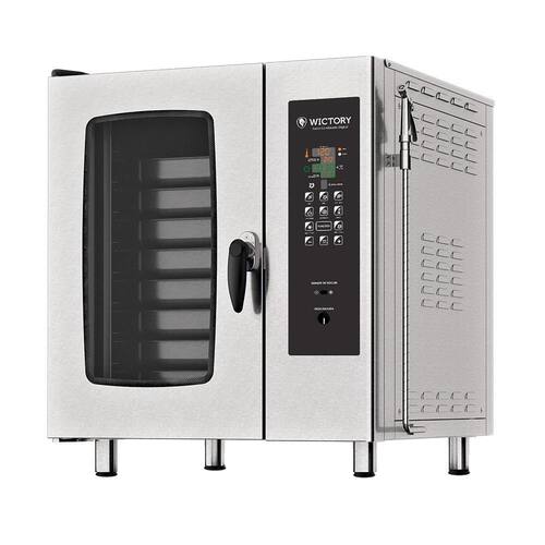 Forno Combinado Wictory Digital Trifásico 380V WCAA-08NE O Forno Combinado Digital com 8 esteiras foi pensado tanto para estabelecimentos menores quanto para uso em confeitarias com altas demandas. Possui termopar que proporciona um alto controle de temperatura na câmara de cocção, em conjunto ao calor homogêneo, transforma-se em um otimo equipamento para produtos delicados. Conta com cinco modos de cocção em um único painel de controle: Na Função Vapor temos as seguintes modalidades de cocção: branquear, vaporizar, escalfar, pré-cozer, e entre outras. Na Função Ar Seco, temos as seguintes modalidades de cocção: assar, fritar, gratinar, grelhar, entre outras. Na Função Combinado, é utilizado para cozimento de alimentos em tempos muito curtos sem perder suas características e nutrientes. A Função Regenerar é utilizada para regenerar alimentos resfriados ou congelados, podendo ainda controlar quanto de umidade vai ser necessário para regenerar o alimento. A Função Banho Maria tem opções de trabalhar com baixas temperaturas, muito utilizada em alimentos delicados, ou procesimentos de descongelamento, inclusive em produtos embalados a vácuo. Conta também com funções extras, como a Função Limpeza, que permite realizar a higienização do forno de forma prática e eficiente e Sensor de Núcleo, que é inserido no interior do alimento, notificando em tempo real a temperatura do alimento. Este forno possui a capacidade de 8 Cubas Gastronômicas . Item não incluso . Adquira agora mesmo o Forno Combinado Gourmet, um equipamento que irá suprir todas as suas necessidades em cocção.