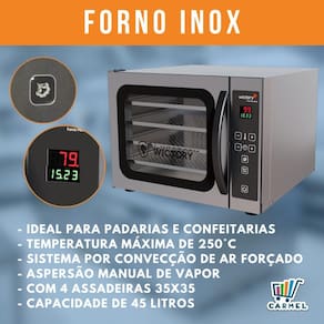 Forno Mini Convector 50 Litros Inox Com 4 Assadeiras 35x35 Com Cavalete - Wictory