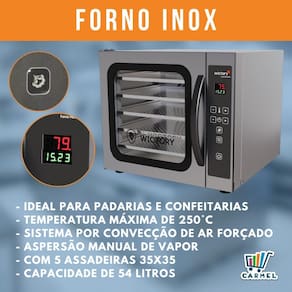 Forno Mini Convector 60 Litros Inox Com 5 Assadeiras 35x35 Wictory