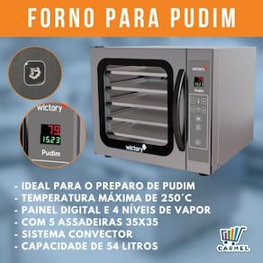 Faça pudins perfeitos e em grande escala de produção! O Forno para Pudim WCPP-535 da Wictory é um equipamento desenvolvido especificamente para o preparo de pudins, oferecendo uma alternativa conveniente ao método tradicional de cozinhar os alimentos em banho-maria.
