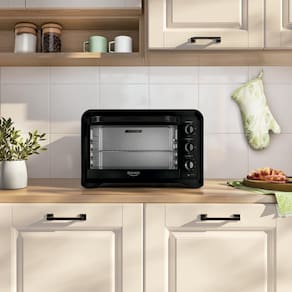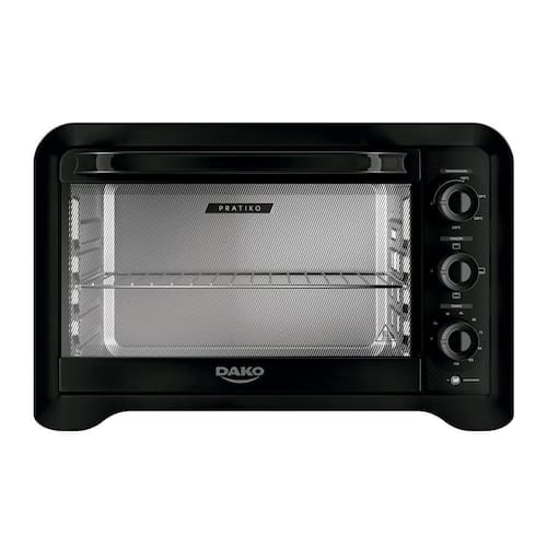 Forno Elétrico de Bancada PratiKo 50 L Dako com Grill Preto. Possui 50 litros de capacidade, timer de até 120 minutos com desligamento automático, controle de temperatura de 100°C a 250°C, prateleira com 3 níveis de altura e função Grill.Timer