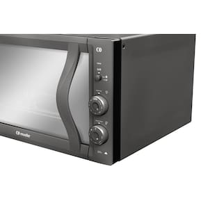 Forno de Bancada Mueller 50 litros com Grill Espelhado MFB50F. Abertura de porta lateral. Acabamento do interior do forno Total Clean. Bandeja para resíduos removível. Dourador Grill. Luz Interior. Material frontal em termoplástico e corpo em chapa de aço pintada. Prateleira com três níveis de altura. Timer de até 120 minutos com aviso sonoro. Botões de Acionamento Manual. Variação de temperatura de 50ºC a 300ºC. Vidro da porta duplo.Timer