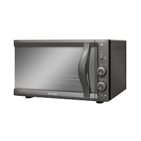 Forno de Bancada Mueller 50 litros com Grill Espelhado MFB50F. Possui abertura de porta lateral, acabamento interno Total Clean, bandeja para resíduos removível, dourador Grill, luz interior, material frontal em termoplástico e corpo em chapa de aço pintada. Conta com 01 prateleira com três níveis de altura, timer de até 120 minutos com aviso sonoro, botões de acionamento manual e variação de temperatura de 50ºC a 300ºC. Vidro da porta duplo.Timer
