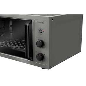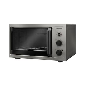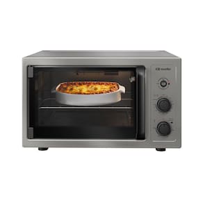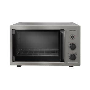 Abertura de porta lateral, Acabamento interno Total Clean, Bandeja removível, Dourador Grill, Luz Interior, Material frontal em termoplástico, Corpo em chapa de aço pintada, 1 prateleira com três níveis de altura, Timer de até 120 minutos com aviso sonoro, Controle por botões manuais, Variação de temperatura de 50°C a 260°C, Vidro da porta simples.Forno autolimpante