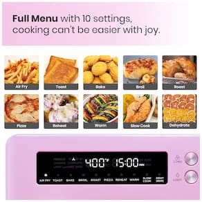 Capacidade Ampla para Família e Festas: Com um espaço 30% a 60% maior do que fornos convencionais, este modelo permite assar um frango de 2,2 a 2,7 kg, tostar até 6 fatias de pão, preparar uma grande porção de batatas fritas, 20 asas de frango ou uma pizza de 30 cm, tornando-o ideal para refeições em família e eventos.