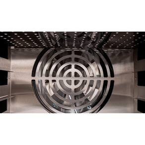 Sistema de cocção por convecção de ar forçado, proporcionando maior rapidez e uniformidade nos assados em relação ao método tradicional;