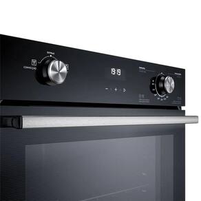 Forno de Embutir a Gás Electrolux 80L Efficient OE8GH Voltagem: 220V Cor: Preto Obtenha maior agilidade e ótimos resultados ao preparar suas receitas com o novo Forno de Embutir a Gás Electrolux 80L Efficient com PerfectCook360 OE8GH . Com tecnologia PerfectCook360 que combina um forno com Cavidade Selada e Convecção, você cozinha até 30% mais rápido e tudo por igual. A Cavidade Selada permite um melhor isolamento térmico no interior da cavidade por meio de uma estrutura com cantos arredondados que retém toda a temperatura dentro forno. Já a Convecção, assa tudo por igual através de um ventilador interno que circula o ar quente de forma uniforme e garante uma temperatura homogênea em todos os cantos e alturas do forno. Esse forno também conta com Timer Digital que programa o tempo de cocção desejado e ao término do preparo, emite um aviso sonoro, além da Função Gratinar e Dourar que te permite atingir melhores resultados de textura e crocância em suas receitas. O Forno de Embutir Electrolux oferece maior praticidade ao dia a dia pois seu vidro é removível, proporcionando mais facilidade na hora da limpeza, e sua Esmaltação FastClean impede a de sujeiras, facilitando a remoção de gordura e resíduos de comida no interior do forno. Perfectcook360: Tecnologia que combina um forno com Cavidade Selada e Convecção e permite assar até 30% mais rápido e tudo por igual. Convecção: Assa tudo por igual através de um ventilador interno que circula o ar quente de forma uniforme e garante uma temperatura homogênea em todos os cantos e alturas do forno. Cavidade Selada: Permite um melhor isolamento térmico no interior da cavidade por meio de uma estrutura com cantos arredondados que retém toda a temperatura dentro forno. Timer Digital: Programe o tempo de cocção desejado e ao término do preparo, o timer emitirá um aviso sonoro. Função Gratinar e Dourar: Finalize suas receitas com essa função ao gratinar e dourar a superfície dos alimentos e obter melhores resultados de textura e crocância. Vidro Removível: Remova o vidro interno com facilidade para uma melhor limpeza do seu forno. Esmaltação FastClean: Interior do forno com esmaltação vitrificada que impede a de sujeiras, facilitando a remoção de gordura e resíduos de comida. Marca: Não Informado